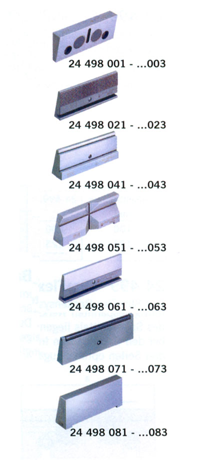 產品編號 | 鉗口 規格說明 | 24498 | | 24498001 | Grundbacke Q.I.S 100mm Backenbreite, mit Dauermagnet, HILMA | 24498002 | Grundbacke Q.I.S 125mm Backenbreite, mit Dauermagnet, HILMA | 24498003 | Grundbacke Q.I.S 160mm Backenbreite, mit Dauermagnet, HILMA | 24498021 | Wechselbacke Q.I.S 100mm Backenbreite, geriffelt, HILMA | 24498022 | Wechselbacke Q.I.S 125mm Backenbreite, geriffelt, HILMA | 24498023 | Wechselbacke Q.I.S 160mm Backenbreite, geriffelt, HILMA | 24498041 | Wechselbacke Q.I.S 100mm Backenbreite, mit Stufen, HILMA | 24498042 | Wechselbacke Q.I.S 125mm Backenbreite, mit Stufen, HILMA | 24498043 | Wechselbacke Q.I.S 160mm Backenbreite, mit Stufen, HILMA | 24498051 | Wechselbacke Q.I.S 100mm Backenbreite, mit Prismen, HILMA | 24498052 | Wechselbacke Q.I.S 125mm Backenbreite, mit Prismen, HILMA | 24498053 | Wechselbacke Q.I.S 160mm Backenbreite, mit Prismen, HILMA | 24498061 | Wechselbacke Q.I.S 100mm Backenbreite glatt, HILMA | 24498062 | Wechselbacke Q.I.S 125mm Backenbreite glatt, HILMA | 24498063 | Wechselbacke Q.I.S 160mm Backenbreite glatt, HILMA | 24498071 | Wechselbacke Q.I.S 100mm Backenbreite mit Rollen, HILMA | 24498072 | Wechselbacke Q.I.S 125mm Backenbreite mit Rollen, HILMA | 24498073 | Wechselbacke Q.I.S 160mm Backenbreite mit Rollen, HILMA | 24498081 | Wechselbacke Q.I.S 100mm Backenbreite weich, HILMA | 24498082 | Wechselbacke Q.I.S 125mm Backenbreite weich, HILMA | 24498083 | Wechselbacke Q.I.S 160mm Backenbreite weich, HILMA |